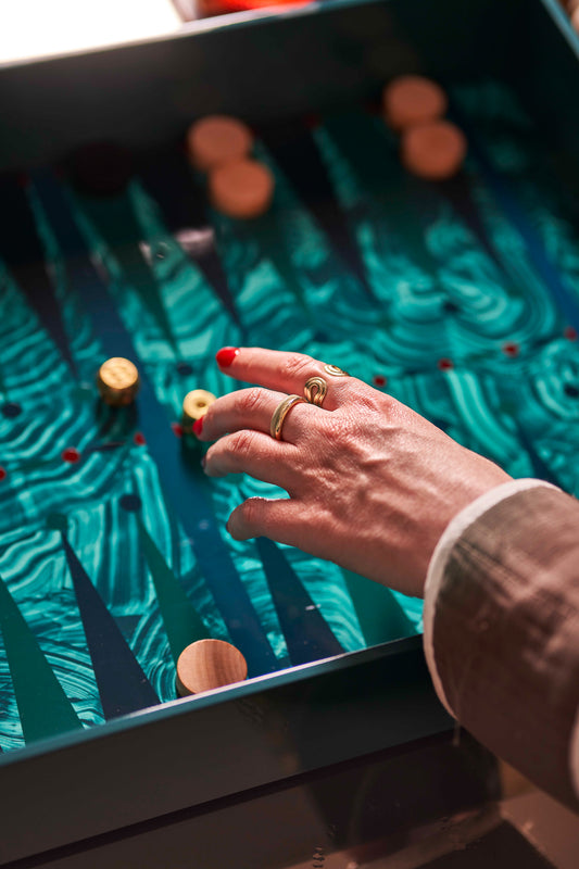Hand Painted Malachite Lacquer Backgammon Board
